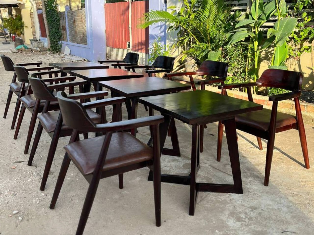 Upgrade your café, restaurant, or dining space with this elegant solid wood table and chair set, designed for durability, comfort, and modern style. Each piece is crafted from high-quality hardwood with a smooth dark walnut finish, providing a warm and premium look suitable for indoor or outdoor use.