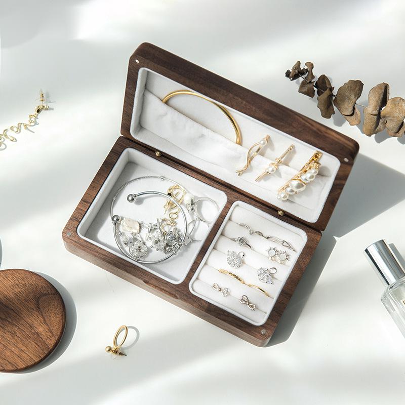 Solid Wood Jewelry Box – Exquisite Portable Storage for Earrings, Rings & Necklaces